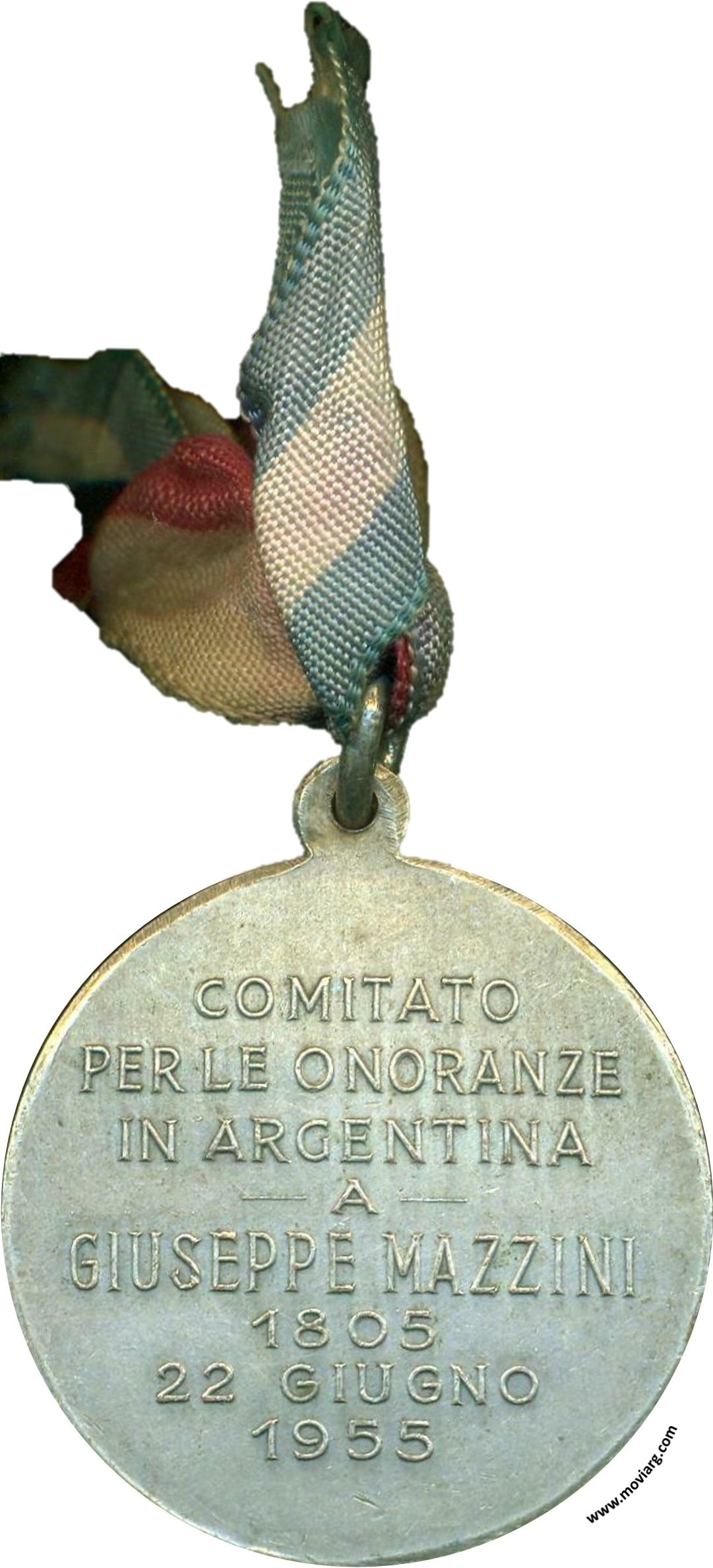 Anverso: DIO E POPOLO / PENSIERO E AZIONE Reverso: COMITATO / PER LE ONORANZE / IN ARGENTINA / A / GIUSEPPE MAZZINI / 1805 / 22 GIUGNO / 1955 Referencia: | |