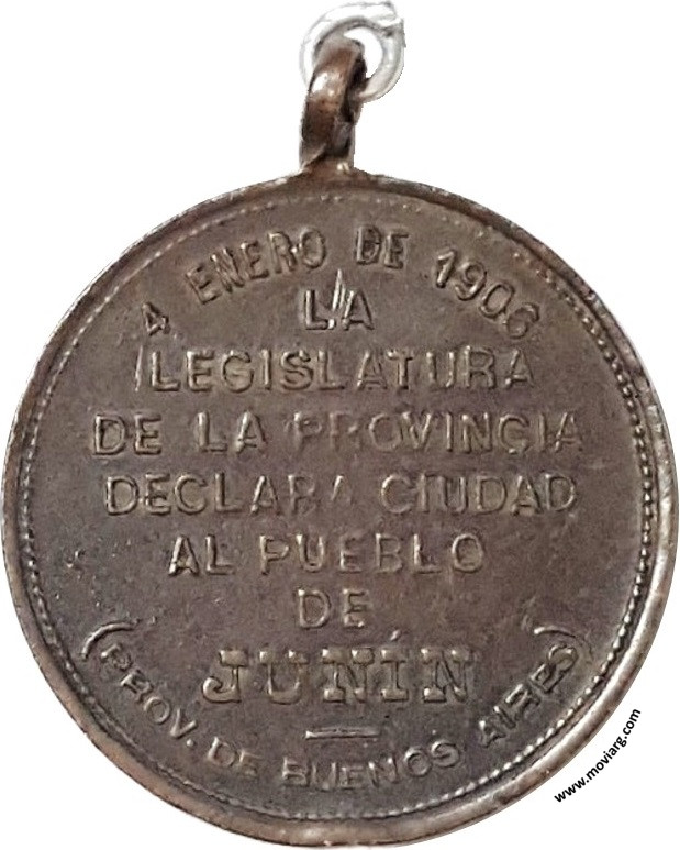Anverso: LA MUNICIPALIDAD / AL PUEBLO Reverso: 4 ENERO DE 1906 / LA / LEGISLATURA / DE LA PROVINCIA / DECLARA CIUDAD / AL PUEBLO / DE / JUNÍN / ( PROV. DE BUENOS AIRES ) Referencia: | |