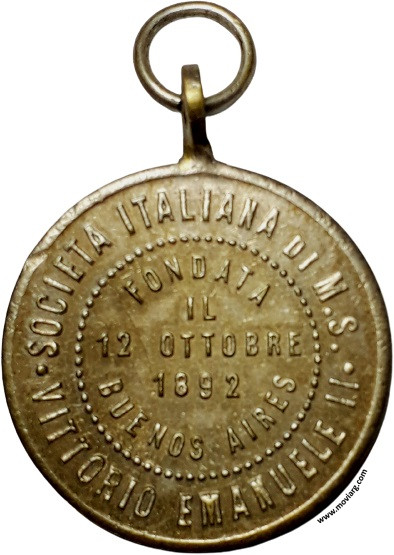Anverso: SOCIETA ITALIANA DI M.S. / VITTORIO EMANUELE II / FONDATA / IL / 12 OTTOBRE / 1892 / BUENOS AIRES Reverso: INAUGURAZIONE / DEL / SALONE SOCIALE / 22 APRILE 1893 Referencia: | |