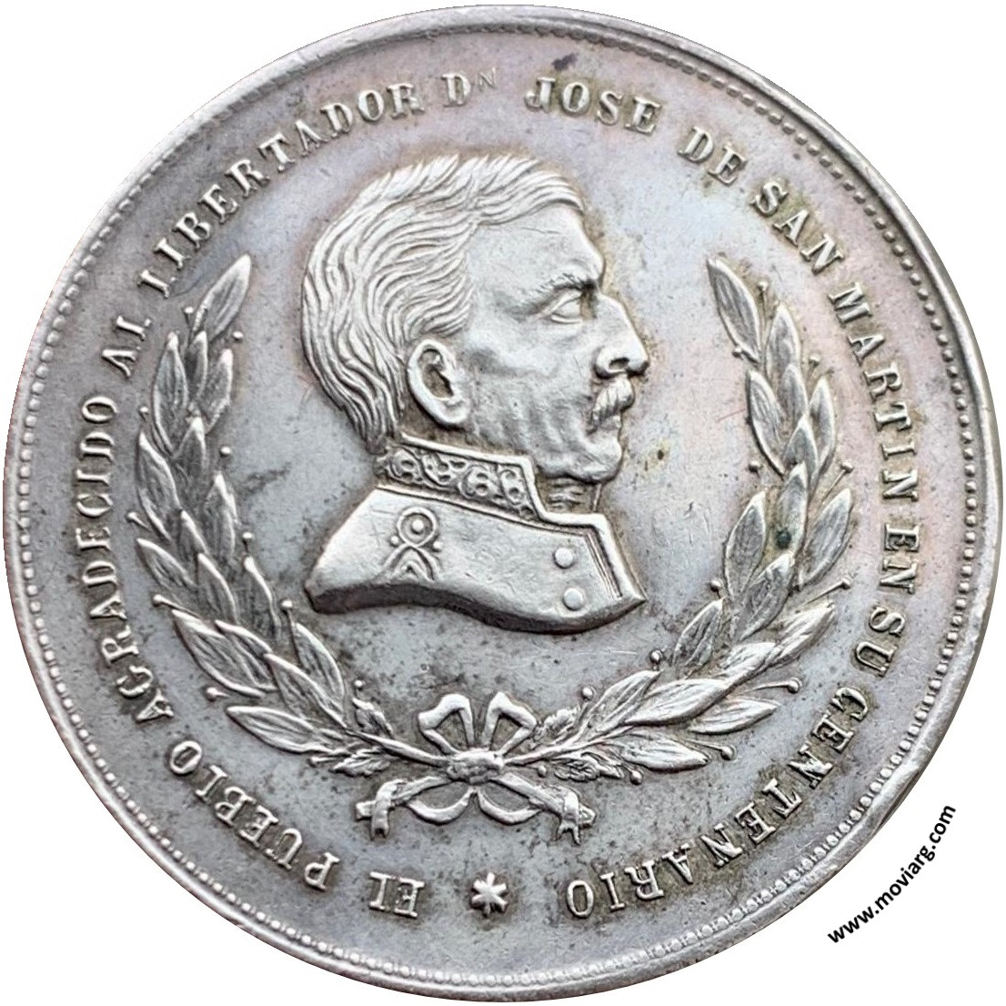 Anverso: EL PUEBLO AGRADECIDO AL LIBERTADOR DN. JOSE DE SAN MARTIN EN SU CENTENARIO Reverso: EL MUNICIPIO DE BUENOS AYRES AL GRAN CAPITAN DE LA INDEPENDENCIA AMERICANA / 25 DE FEBRERO DE 1878 Referencia: | |