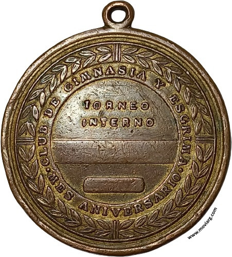 Anverso: MENS SANA IN CORPORE SANO Reverso: CLUB DE GIMNASIA Y ESGRIMA / MES ANIVERSARIO / TORNEO / INTERNO Referencia: | |