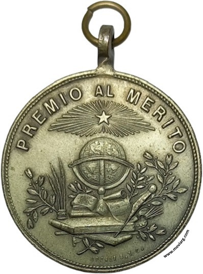 | Año: (1898) Premio al Mérito y Aplicación Metal: Bronce - Peso: 11.4gr - Módulo: 30mm - Rotación: 12hrs Grabador: Ignacio Orzali, José Bellagamba y Constante Rossi | |