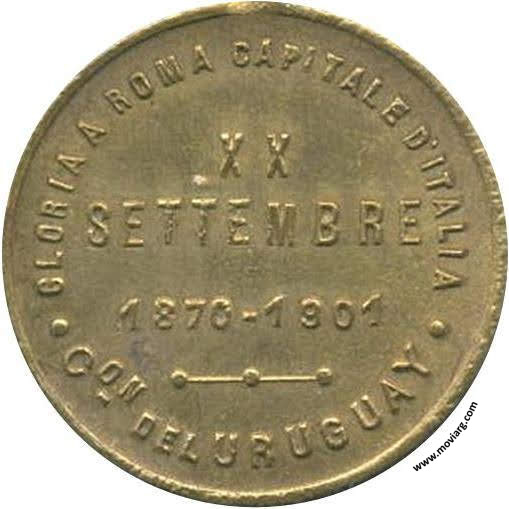 Anverso: Firma: PODESTA HS. VICTORIA 1790 Reverso: GLORIA A ROMA CAPITALE D'ITALIA / CON. DEL URUGUAY / XX / SETTEMBRE / 1870-1901 Referencia: | |