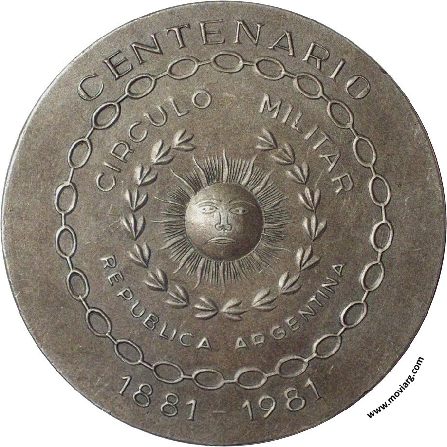 Anverso: CIRCULO MILITAR / REPUBLICA ARGENTINA Reverso: CENTENARIO / 1881 - 1981 / CIRCULO MILITAR / REPUBLICA ARGENTINA Referencia: | |