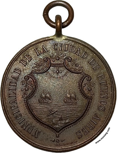 Anverso: MUNICIPALIDAD DE LA CIUDAD DE BUENOS AIRES. Firma: BELLAGAMBA Y ROSSI Reverso: 8 / DE JUNIO / 1860 Referencia: | |