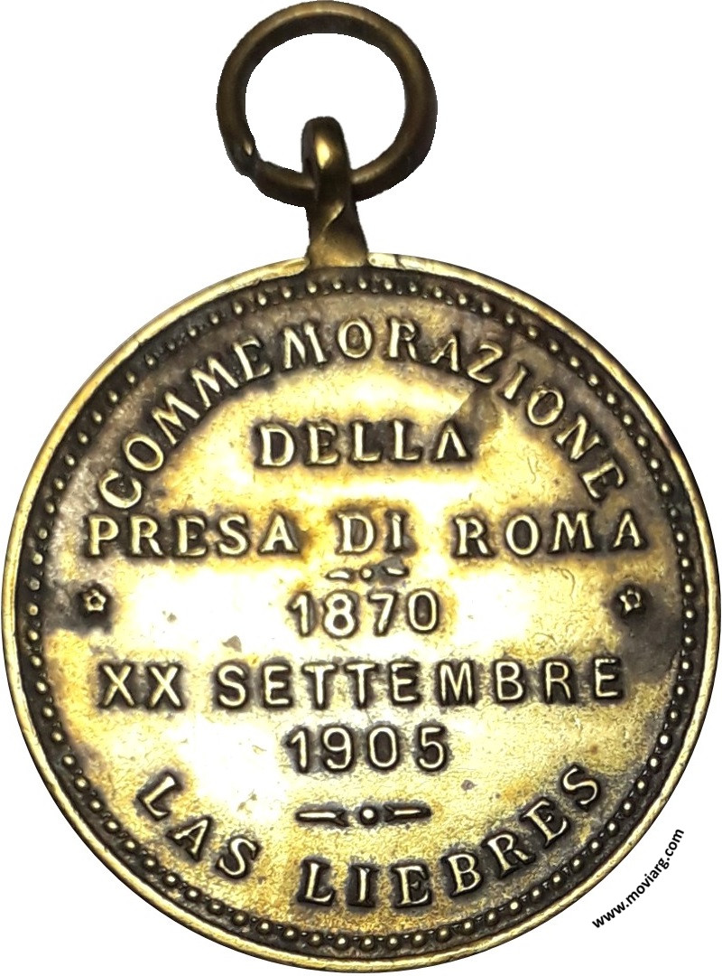 Anverso: Firma: J. GOTTUZZO / A.B. Reverso: COMMEMORAZIONE / DELLA / PRESA DI ROMA / 1870 / XX SETTEMBRE / 1905 / LAS LIEBRES Referencia: | |