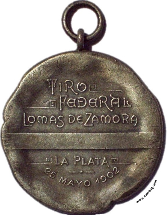 Anverso: PREMIO " BUENOS AIRES " / DONADO POR EL PODER EJECUTIVO DE LA PROVINCIA. Firma: BELLAGAMBA Y ROSSI Reverso: TIRO / FEDERAL / LOMAS DE ZAMORA / LA PLATA / 25 MAYO 1902 Referencia: | |