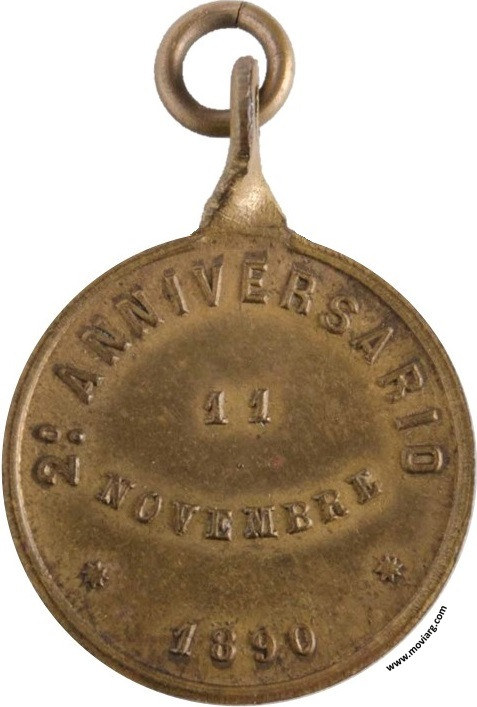 Anverso: SOCIETÁ ITALIANA DI M. S. / BARRACAS AL SUD Reverso: 2° ANNIVERSARIO / 11 / NOVEMBRE / 1890 Referencia: | |