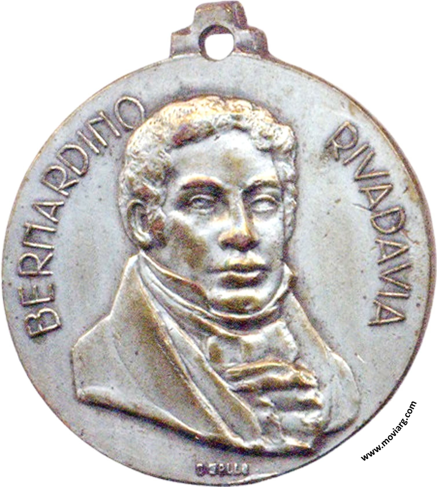 Anverso: BERNARDINO RIVADAVIA. Firma: O. GALLO Reverso: LA / ESCUELA N° 53 / EN PRUEBA / DE ADMIRACION / Y GRATITUD / AL PROCER EPÓNIMO / 1845 · 2 · 9 · 1945 Referencia: | |