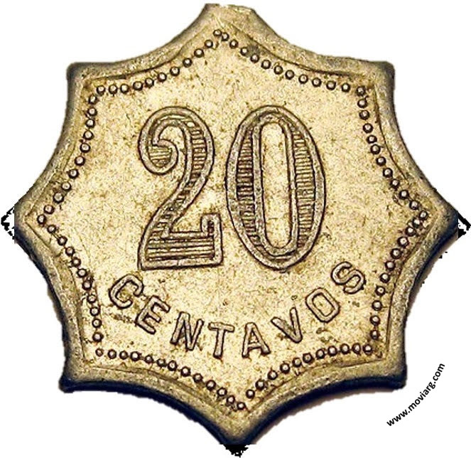 Anverso: 20 / CENTAVOS Reverso: COLISEO / PABELLON DE / LAS ROSAS / CASINO / SCALA / ETC. ETC. ETC. / BUENOS AIRES Referencia: | |