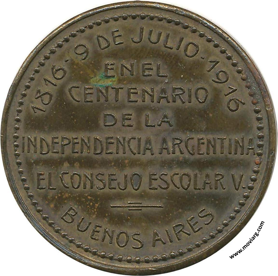 Anverso: Firma: GOTTUZZO Y C. Reverso: 1816 · 9 DE JULIO · 1916 / EN EL / CENTENARIO / DE LA / INDEPENDENCIA ARGENTINA / EL CONSEJO ESCOLAR V. / BUENOS AIRES Referencia: | |