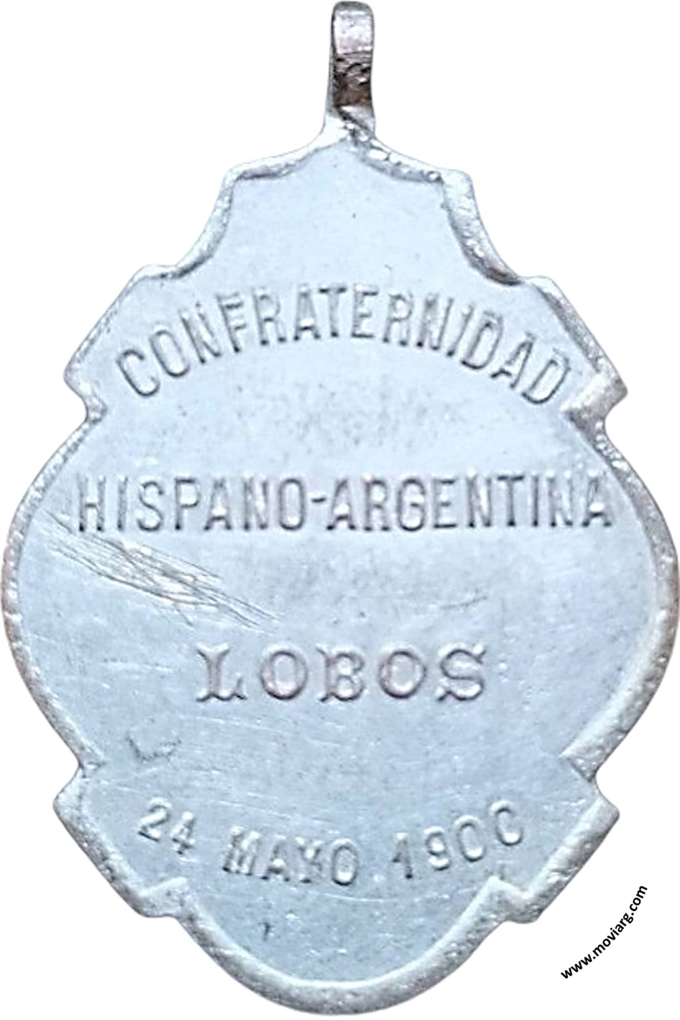Anverso: Firma: BELLAGAMBA Y ROSSI Reverso: CONFRATERNIDAD / HISPANO - ARGENTINA / LOBOS / 24 MAYO 1900 Referencia: | |