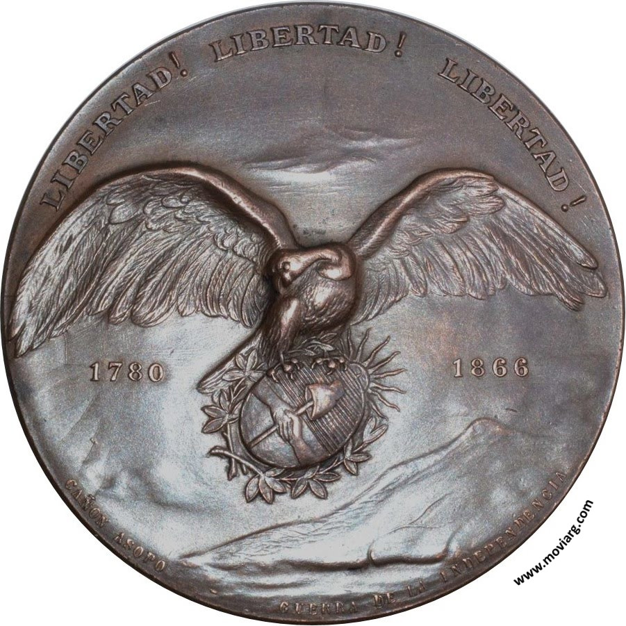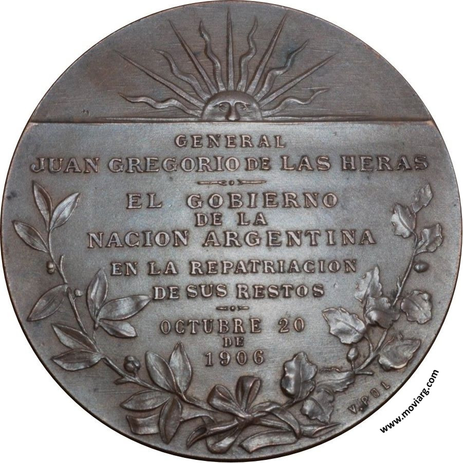 Anverso: LIBERTAD! LIBERTAD! LIBERTAD! / 1780 / 1866. Exergo: CAÑON ASOPO - GUERRA DE LA INDEPENDENCIA Reverso: GENERAL / JUAN GREGORIO DE LAS HERAS / EL GOBIERNO / DE LA / NACION ARGENTINA / EN LA REPATRIACION / DE SUS RESTOS / OCTUBRE 20 / DE / 1906. Firma: V. POL Referencia: | |