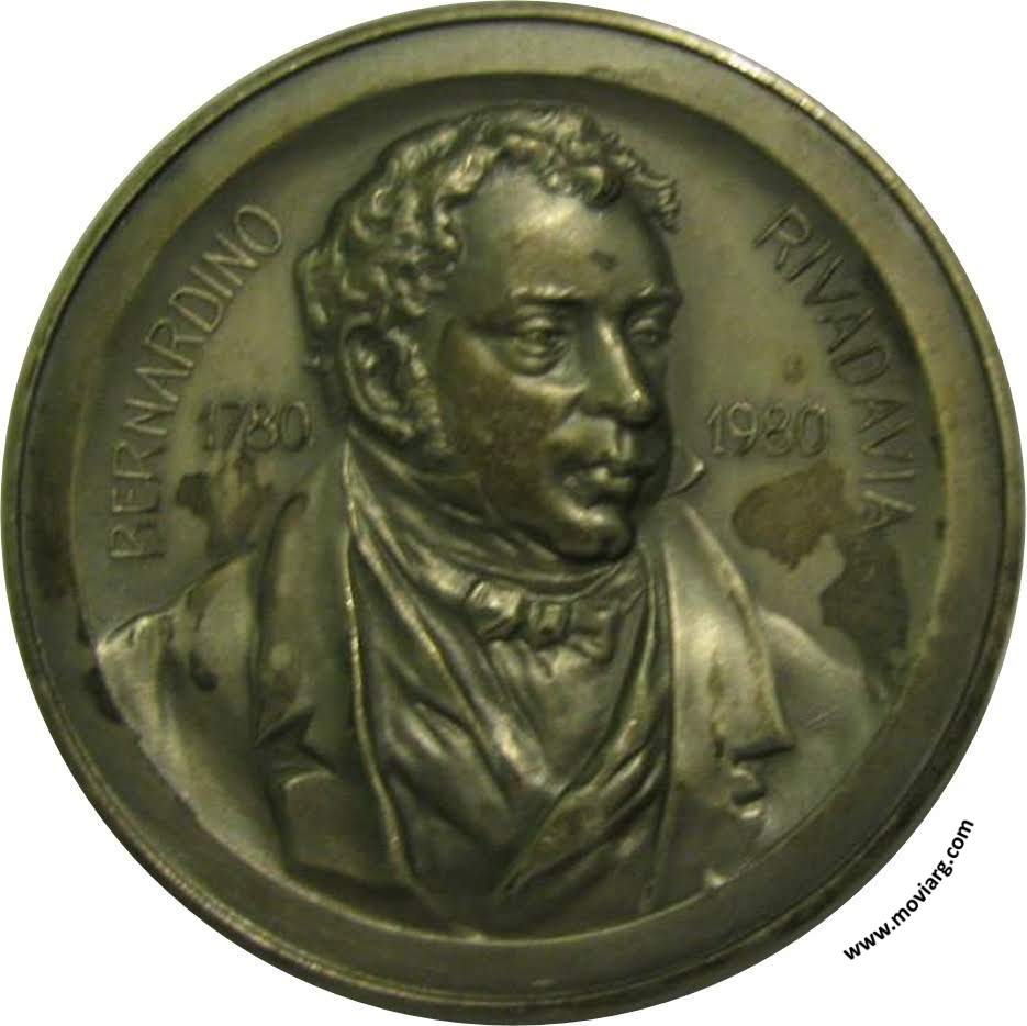 Anverso: BERNARDINO / RIVADAVIA / 1780 / 1980 Reverso: ACADEMIA NACIONAL DE LA HISTORIA / LUCEM QUÆRIMUS Canto: Liso Referencia: | |