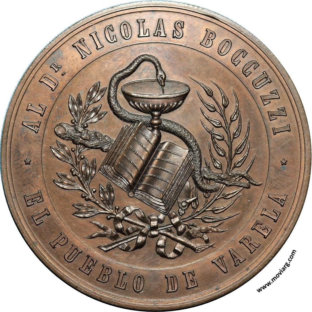 Anverso: AL DR. NICOLAS BOCCUZZI / EL PUEBLO DE VARELA Reverso: A LA HUMANIDAD / Y A LA CIENCIA / 1895 Referencia: | |