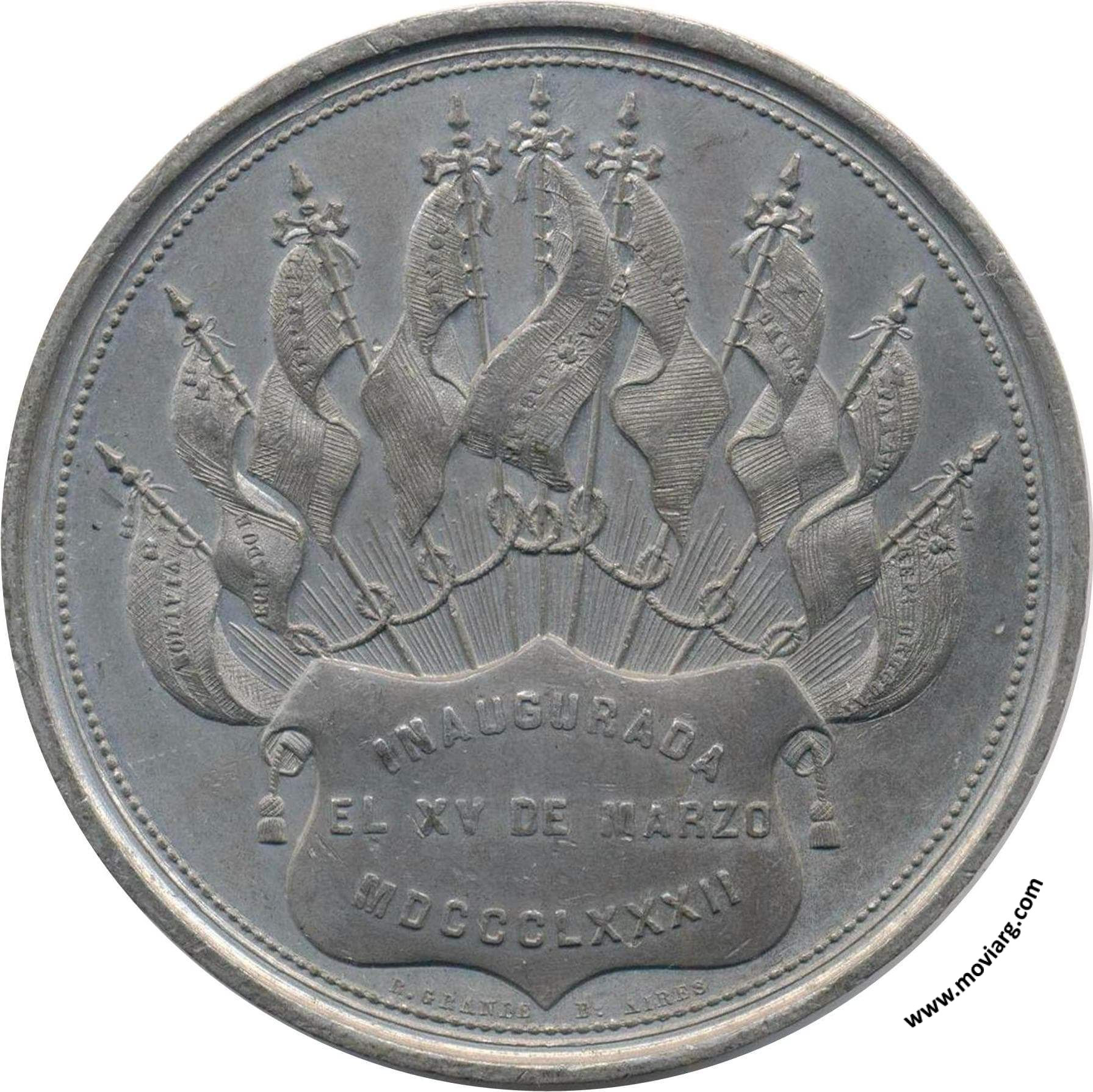 | Año: 1882 Exposiciones Metal: Peltre - Peso: 70.81gr - Módulo: 60.21mm - Espesor: 3.85mm - Rotación: 12hrs Grabador: Rosario Grande | |