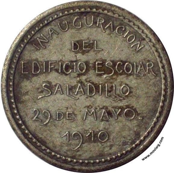 Anverso: OID / MORTALES / EL GRITO / SAGRADO... Reverso: INAUGURACION / DEL / EDIFICIO ESCOLAR / SALADILLO / 29 DE MAYO / 1910 Referencia: | |