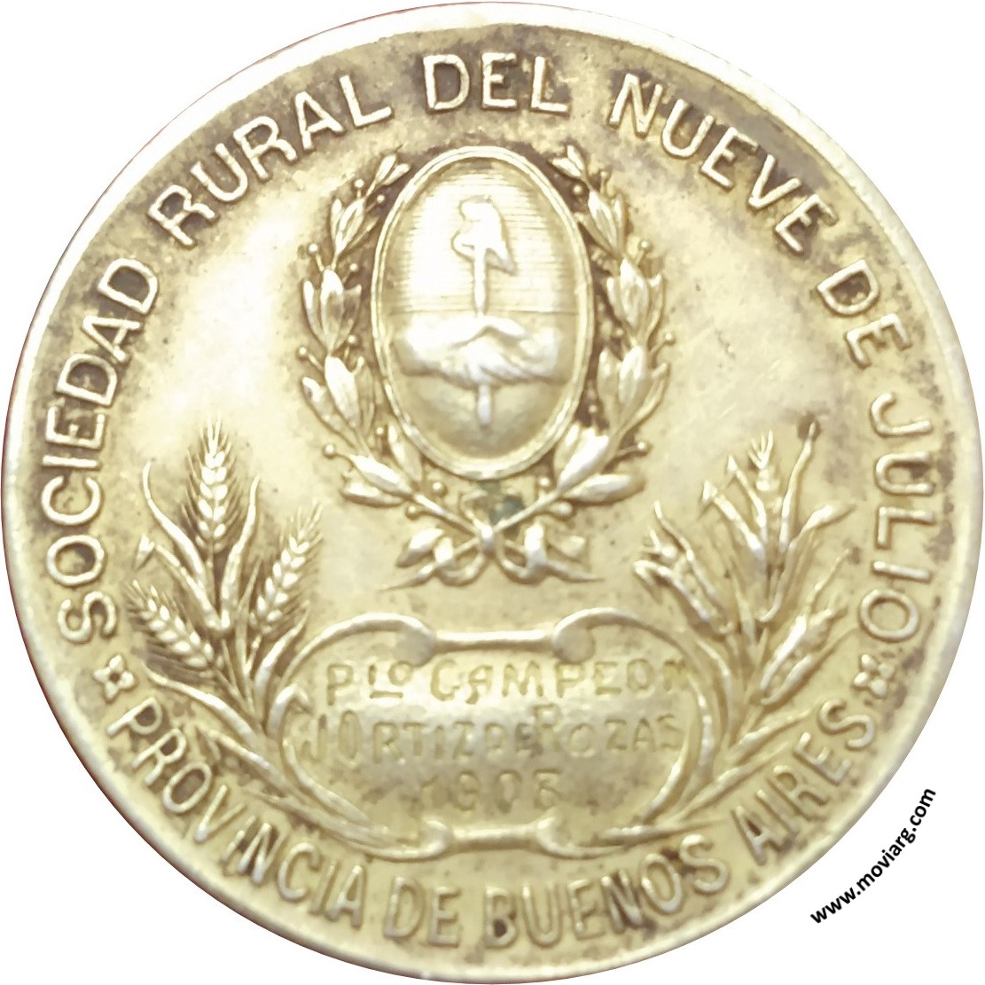 Colección Matías Losinno Anverso: SOCIEDAD RURAL DEL 9 DE JULIO / [ PIO. CAMPEON ] / [ J. ORTIZ DE ROZAS ] / [ 1908 ] / PROVINCIA DE BUENOS AIRESReverso: Firma: BELLAGAMBA Y ROSSI Referencia: | |