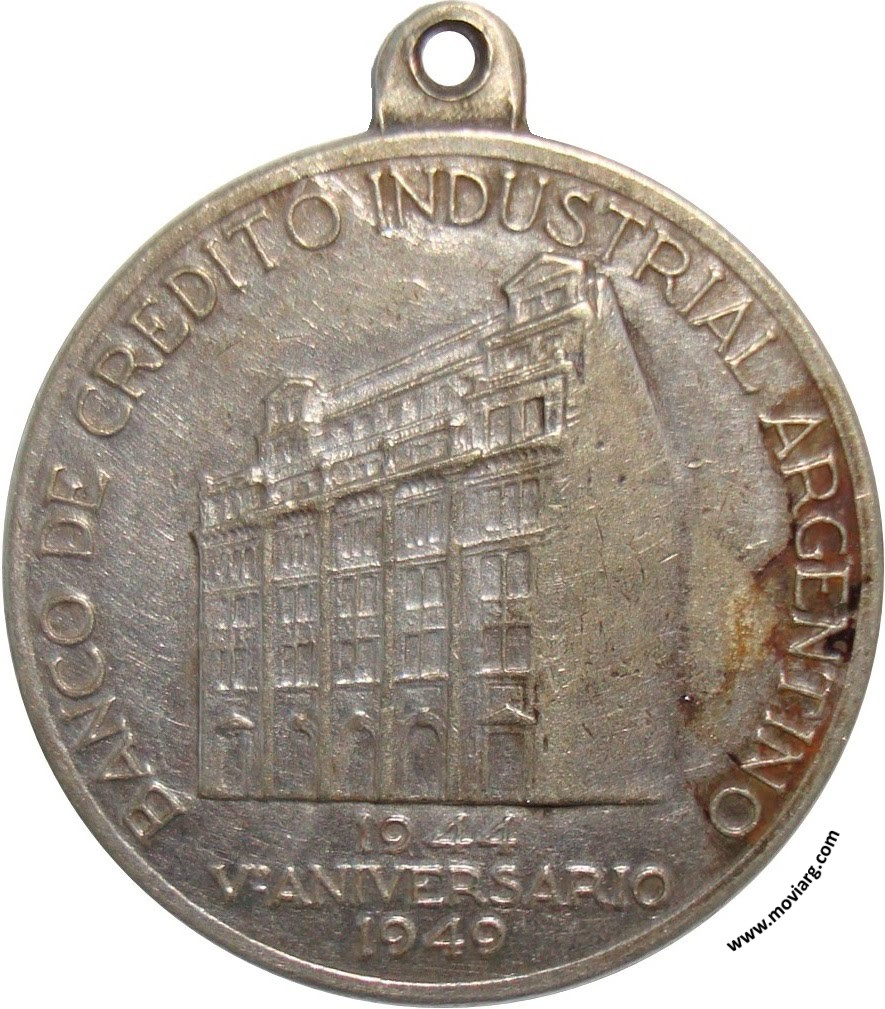 Anverso: BANCO DE CREDITO INDUSTRIAL ARGENTINO / 1944 / V° ANIVERSARIO / 1949 Reverso: EXPOSICION DEL FOMENTO INDUSTRIAL Y MINERO. Firma: SUC. J. F. PIANA Referencia: | |