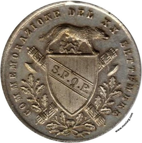 Anverso: COMMEMORAZIONE DEL XX SETTEMBRE. Campo: S.P.Q.R. Reverso: COMITATO / XX SETTEMBRE / DI LANUS / FONDATO / 1904 Referencia: | |