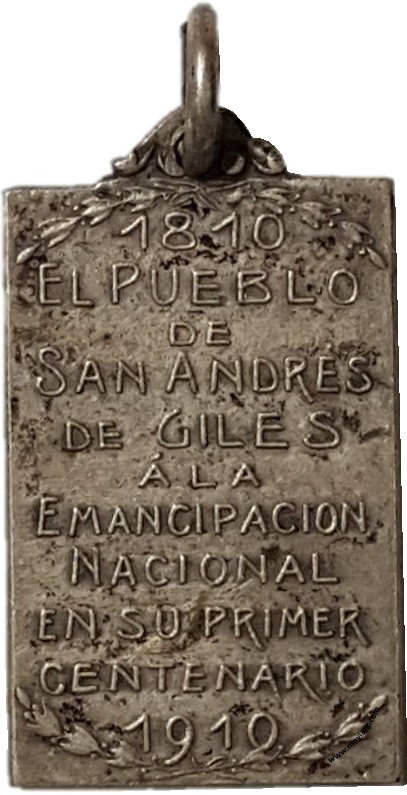 Anverso: Reverso: 1810 / EL PUEBLO / DE / SAN ANDRÉS / DE GILES / Á LA / EMANCIPACION / NACIONAL / EN SU PRIMER / CENTENARIO / 1910 Referencia: | |