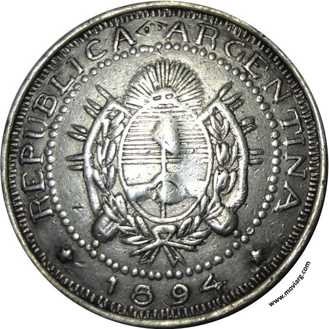 Anverso: LIBERTAD / DOS CENTAVOS Reverso: REPUBLICA ARGENTINA / 1894. Exergo: [ < 900 > ] Referencia: | |