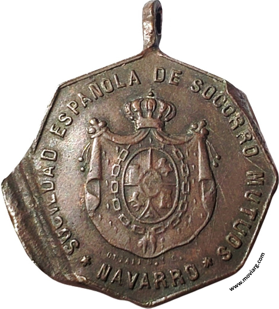 Anverso: SOCIEDAD ESPAÑOLA DE SOCORRO (sic) MUTUOS / NAVARRO. Firma: ORZALI B. Y C. Reverso: PRIMERA ROMERIA ESPAÑOLA / ENERO 1° / 1895 Referencia: | |