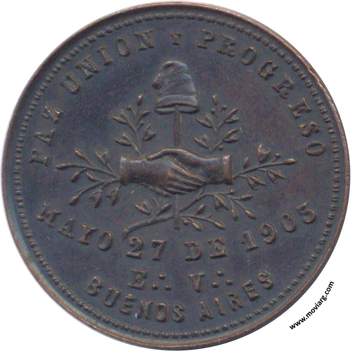 Anverso: EL GR .·. OR .·. ARGENTINO DEL RITO AZUL / AL GR .·. OR .·. DE CHILE Reverso: PAZ UNION Y PROGRESO / MAYO 27 1903 / E .·. V .·. / BUENOS AIRES Referencia: | |