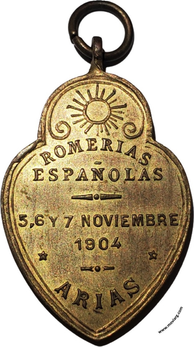 Anverso: CONFRATERNIDAD Reverso: ROMERIAS / ESPAÑOLAS / 5, 6 Y 7 NOVIEMBRE / 1904 / ARIAS Referencia: | |