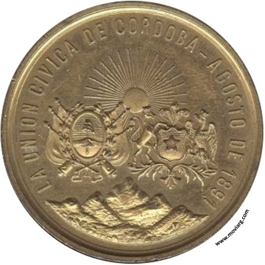 pieza híbrida - dos fuentes Anverso: LA UNION CIVICA DE CORDOBA - AGOSTO DE 1891Reverso: AL DEFENSOR DE LAS INSTITUCIONES DE CHILE / CORONEL ESTANISLAO DEL CANTO. Campo: POR / LA / RAZON / O / LA / FUERZA Referencia: ROSA-/536 | |