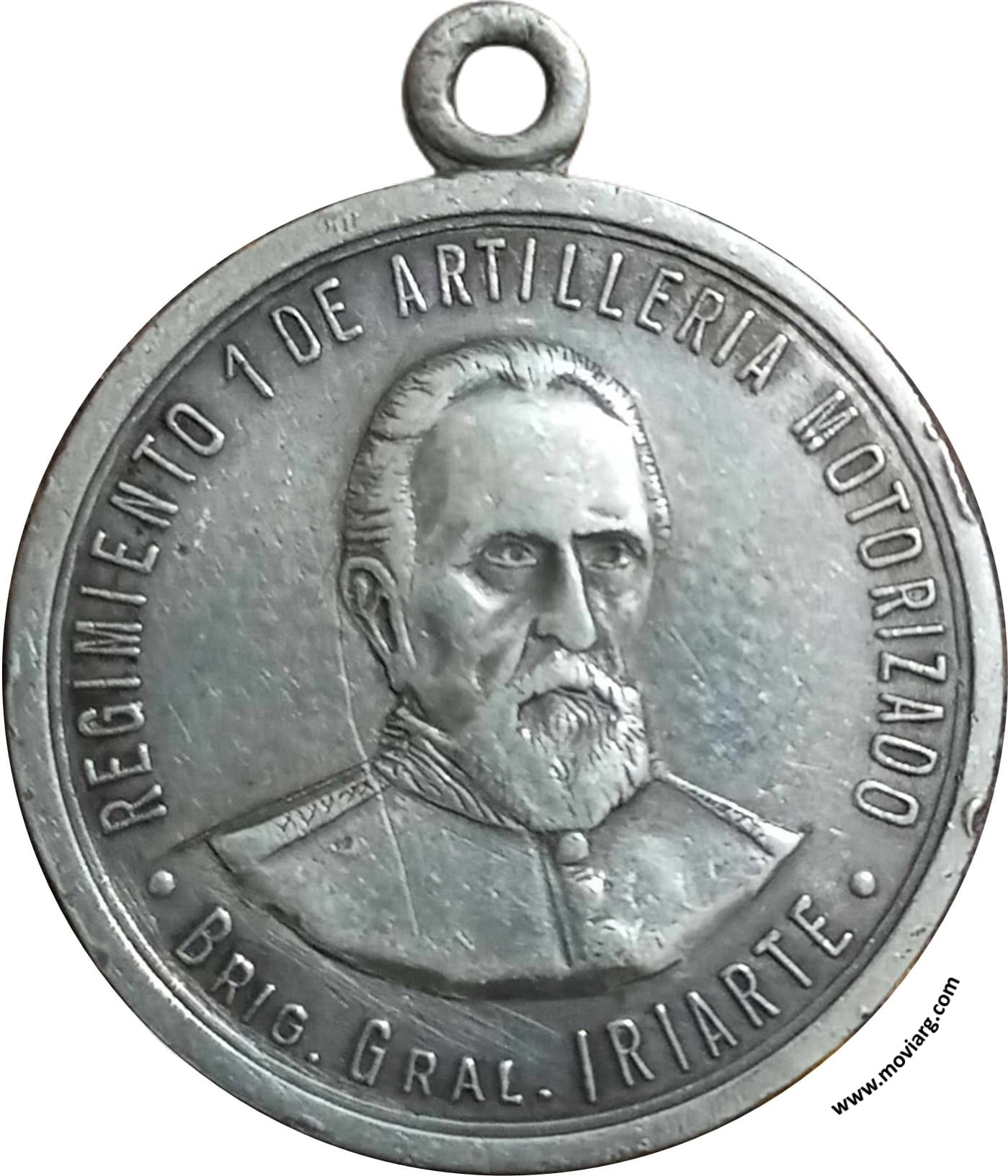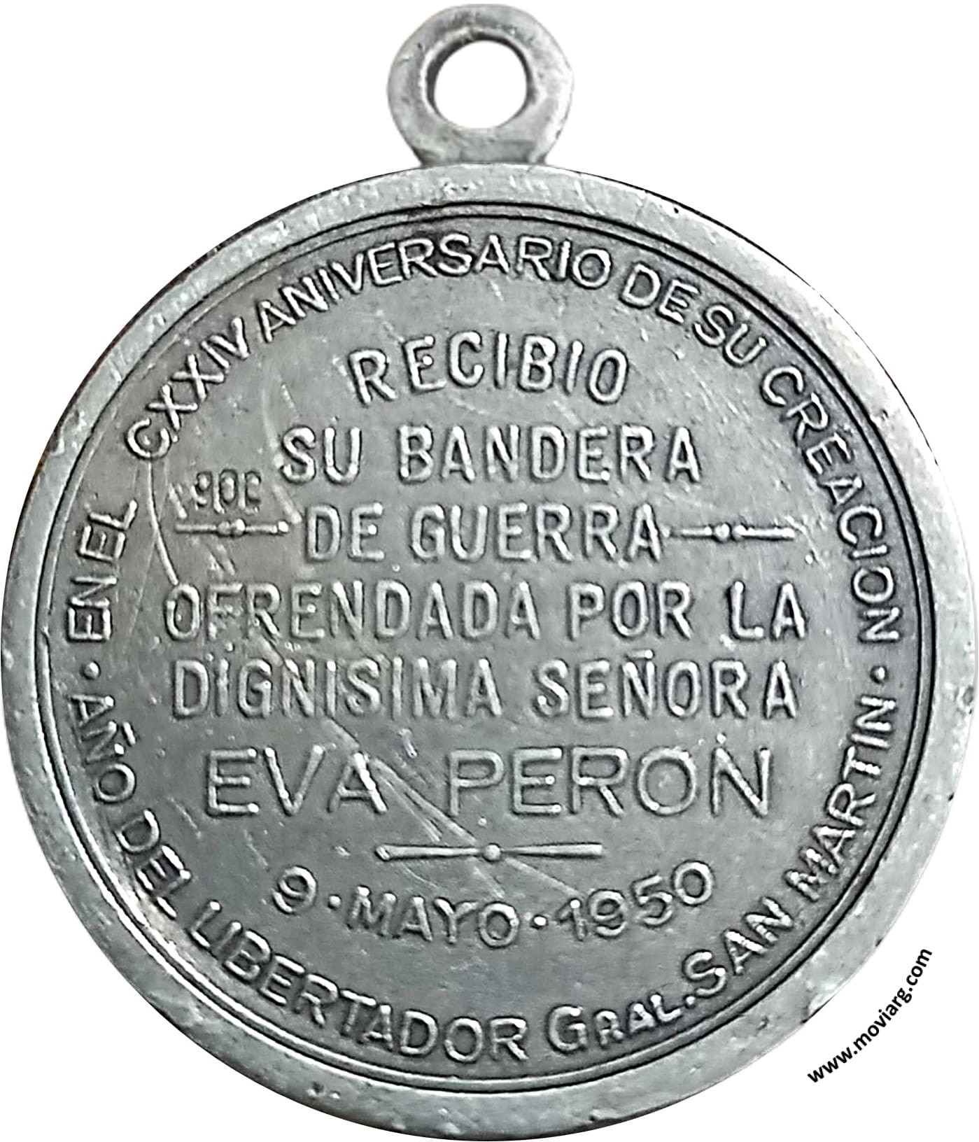 Anverso: REGIMIENTO 1 DE ARTILLERIA MOTORIZADO / BRIG. GRAL. IRIARTE Reverso: EN EL CXXIV ANIVERSARIO DE SU CREACION / RECIBIO / SU BANDERA / DE GUERRA / OFRENDADA POR LA / DIGNISIMA SEÑORA / EVA PERON / 9 · MAYO · 1950 / AÑO DEL LIBERTADOS GRAL. SAN MARTIN Referencia: | |