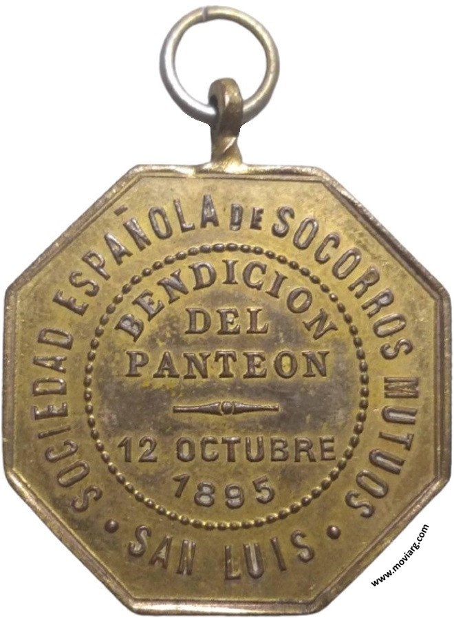 Colección @parryyanumismatico Anverso:Reverso: SOCIEDAD ESPAÑOLA DE SOCORROS MUTUOS / SAN LUIS / BENDICION / DEL / PANTEON / 12 OCTUBRE / 1895 Referencia: | |