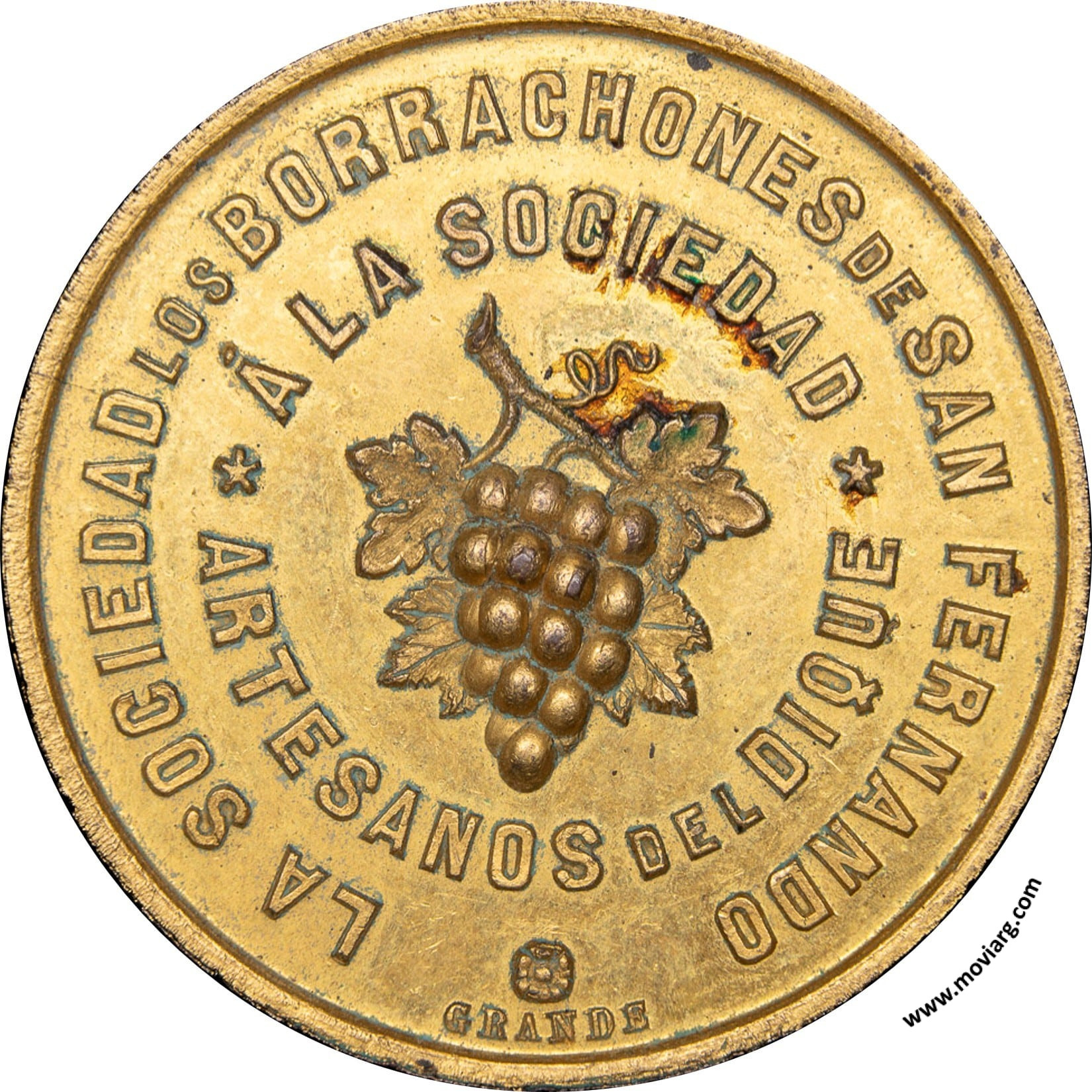 rp numis Anverso: LA SOCIEDAD DE BORRACHONES DE SAN FERNANDO / Á LA SOCIEDAD / ARTESANOS DEL DIQUE. Firma: GRANDEReverso: 25 DE DICIEMBRE / 1892 Referencia: FERRARI-211 (RG) | |