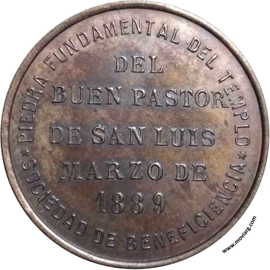 Colección @parryyanumismatico Anverso: EL BUEN PASTOR DÁ SU VIDA POR SUS OVEJASReverso: PIEDRA FUNDAMENTAL DEL TEMPLO / SOCIEDAD DE BENEFICENCIA / DEL / BUEN PASTOR / DE SAN LUIS / MARZO DE / 1889 Referencia: | |