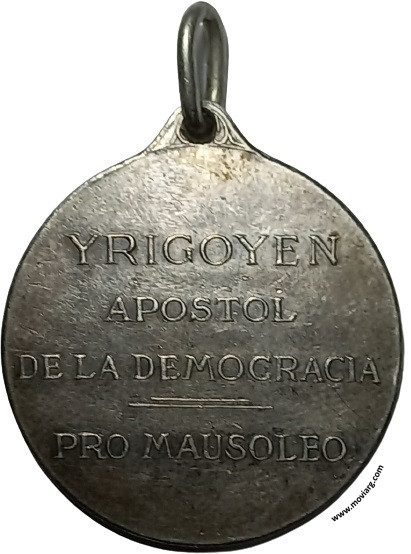 Anverso: Firma: P.Z.B. Reverso: YRIGOYEN / APOSTOL / DE LA DEMOCRACIA / PRO MAUSOLEO Canto: Liso. PLATA Referencia: | |