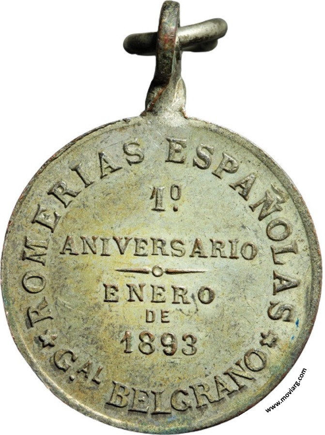 Anverso: ASOCIACION ESPAÑOLA DE SOCORROS MUTUOS Reverso: ROMERIAS ESPAÑOLAS / GAL. BELGRANO / 1° / ANIVERSARIO / ENERO / DE / 1893 Referencia: | |