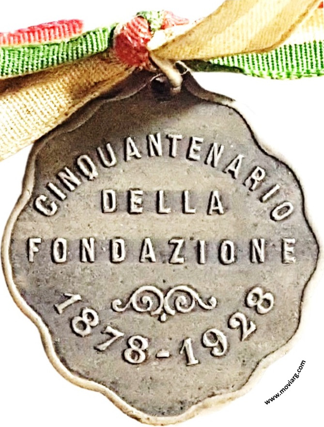 Anverso: SOCIETÁ ITALIANA / DI / U. E M. S. / TUCUMAN Reverso: CINQUANTENARIO / DELLA / FONDAZIONE / 1878 - 1928 Referencia: | |