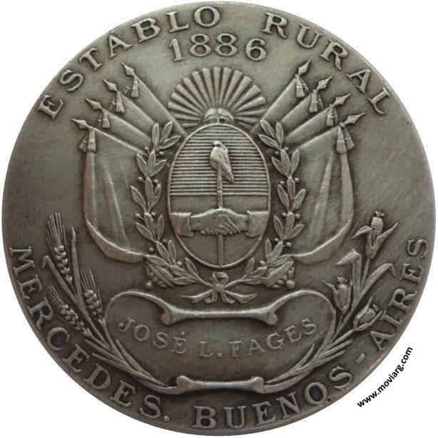 Anverso: ESTABLO RURAL / 1886 / JOSE L. FAGES / MERCEDES. BUENOS- AIRES Reverso: Exergo: A. DESAIDE. EDIT Canto: Liso. (Cornucopia) ARGENT Referencia: | |