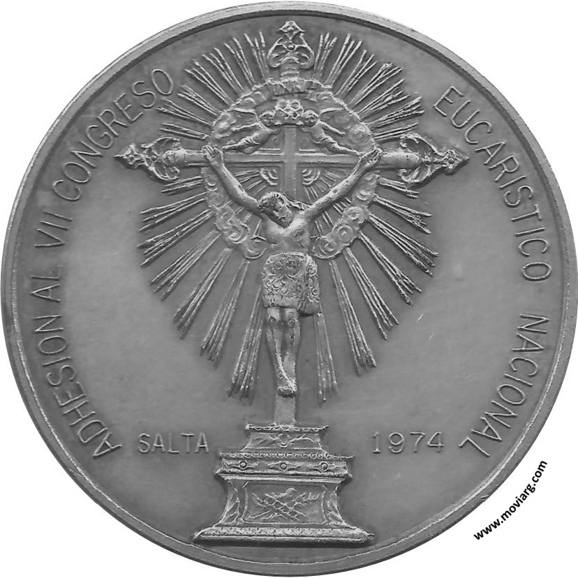 Anverso: ADHESION AL VII CONGRESO / EUCARISTICO NACIONAL / SALTA / 1974 Reverso: ASOCIACION NUMISMATICA ARGENTINA / DELEGACION SALTA. Firma: PIANA BS. AS. ROBERTI Referencia: | |