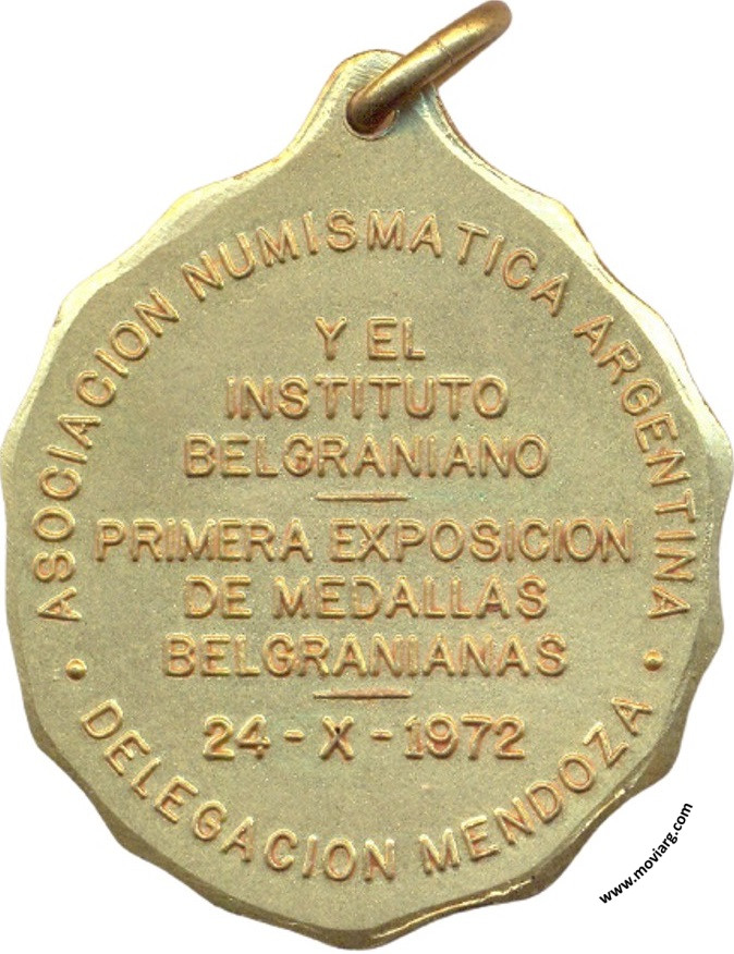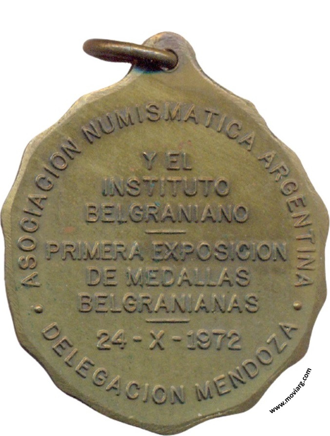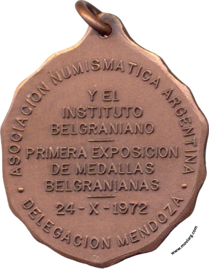 Anverso: MANUEL BELGRANO / 1770 / 1820 Reverso: ASOCIACION NUMISMATICA ARGENTINA / DELEGACION MENDOZA / Y EL / INSTITUTO / BELGRANIANO / PRIMERA EXPOSICION / DE MEDALLAS / BELGRANIANAS / 24 - X - 1972 Referencia: | |