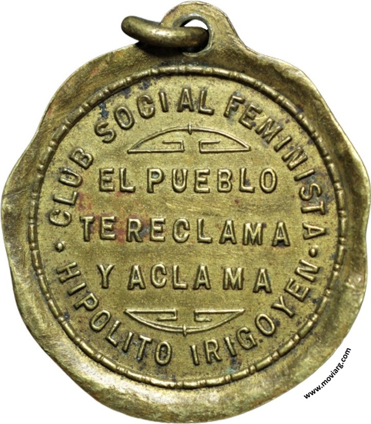 Anverso: Firma: HORTA Reverso: CLUB SOCIAL FEMINISTA / HIPOLITO IRIGOYEN / EL PUEBLO / TE RECLAMA / Y ACLAMA Referencia: | |