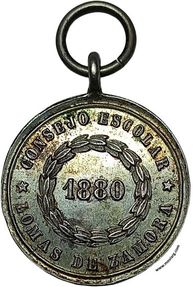 Anverso: CONSEJO ESCOLAR / LOMAS DE ZAMORA / 1880 Reverso: A LA / APLICACION / Y / MORAL Referencia: | |