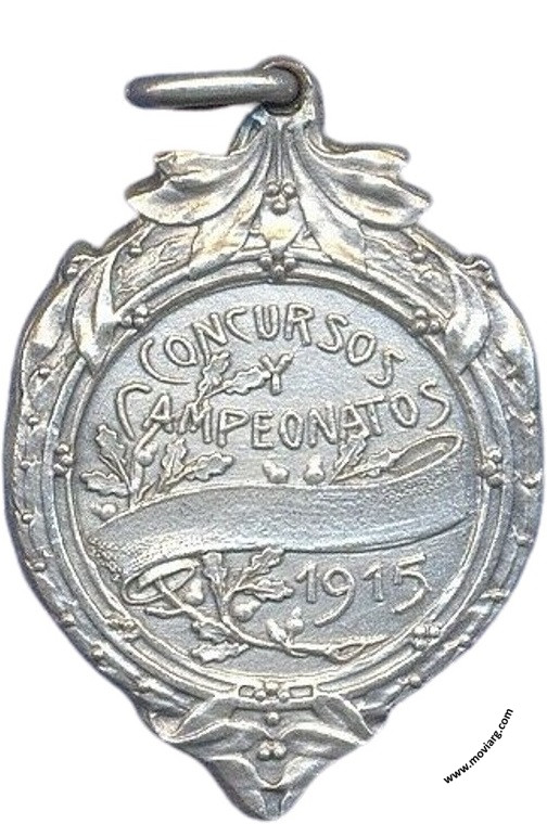 Anverso: TIRO FEDERAL ARGENTINO / BAHIA BLANCA Reverso: CONCURSOS / Y / CAMPEONATOS / 1915 Canto: Liso. PLATA Referencia: | |