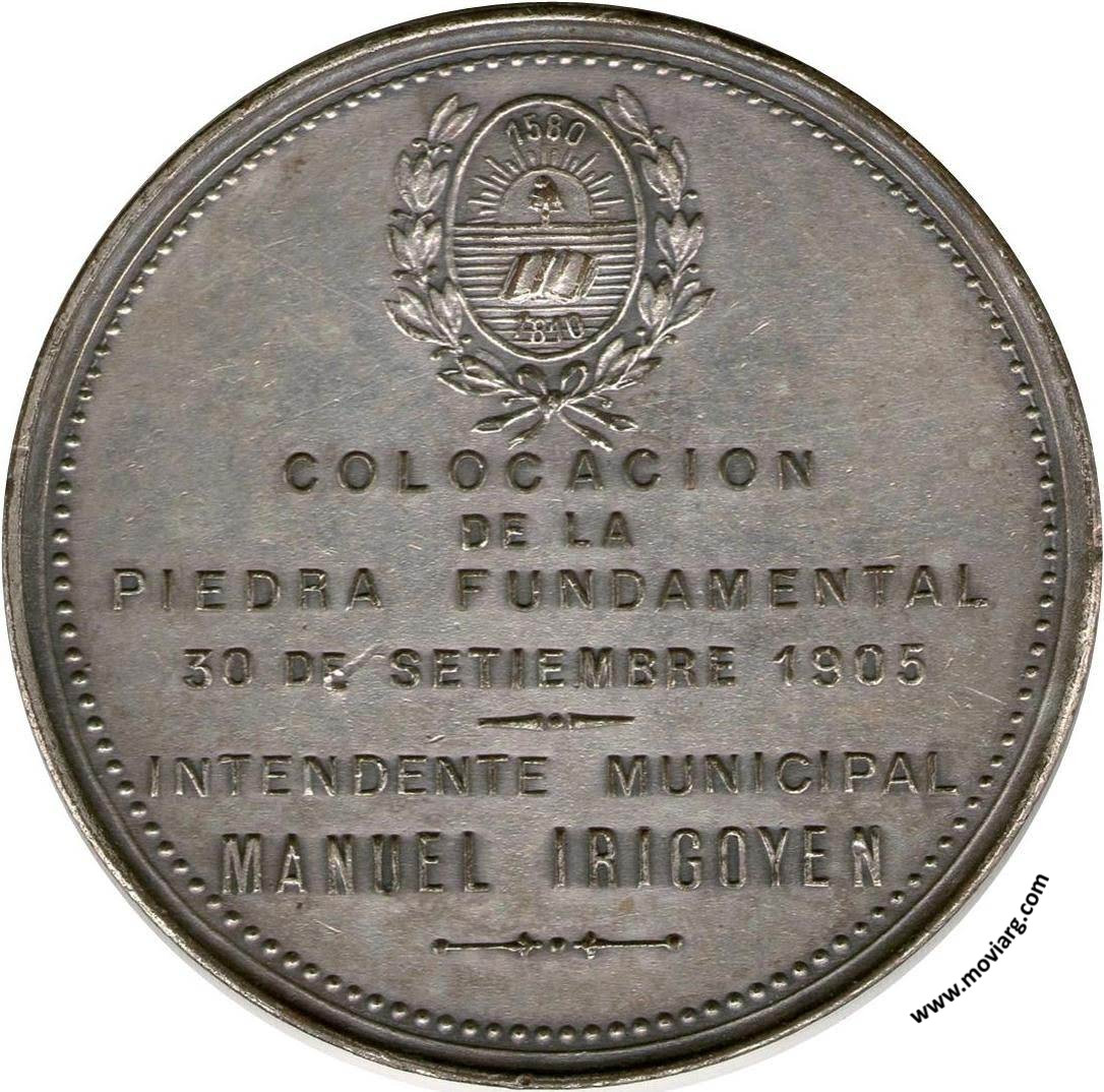 Anverso: ASISTENCIA PÚBLICA / SANTA FÉ. Firma: J. GOTTUZZO / B. AIRES Reverso: COLOCACION / DE LA / PIEDRA FUNDAMENTAL / 30 DE SETIEMBRE 1905 / INTENDENTE MUNICIPAL / MANUEL IRIGOYEN. Campo: 1580 / 1810 Referencia: | |
