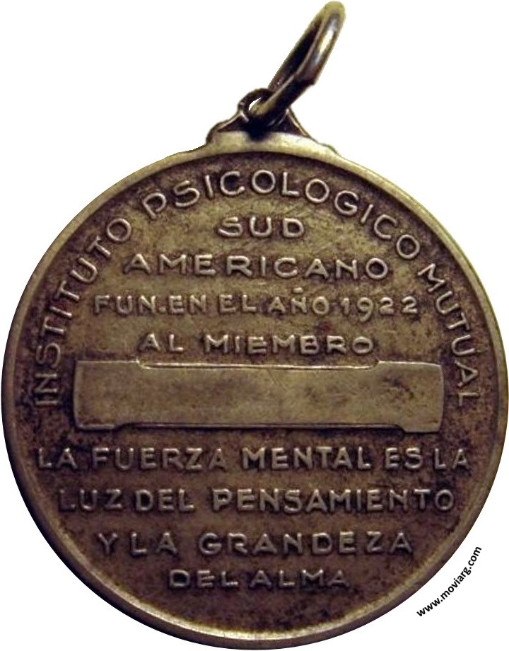 bibliomedicinadigital Anverso: Campo: EXITO / PODER / PROGRESO / MAGNETICOReverso: INSTITUTO PSICOLOGICO MUTUAL / SUD / AMERICANO / FUND. EN EL AÑO 1922 / AL MIEMBRO / LA FUERZA MENTAL ES LA / LUZ DEL PENSAMIENTO / Y LA GRANDEZA / DEL ALMA Referencia: | |