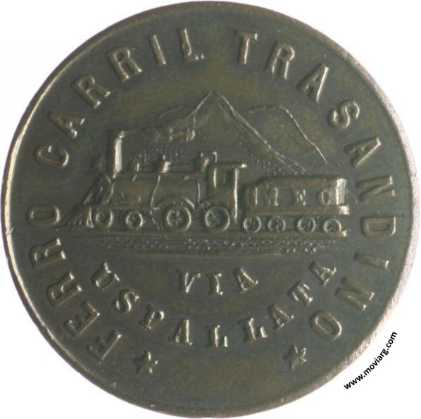Anverso: FERRO CARRIL TRASANDINO / VIA / USPALLATA Reverso: INAUGURACION OFICIAL / DE / LOS / TRABAJOS / ABRIL 5 / DE 1889 Referencia: | |