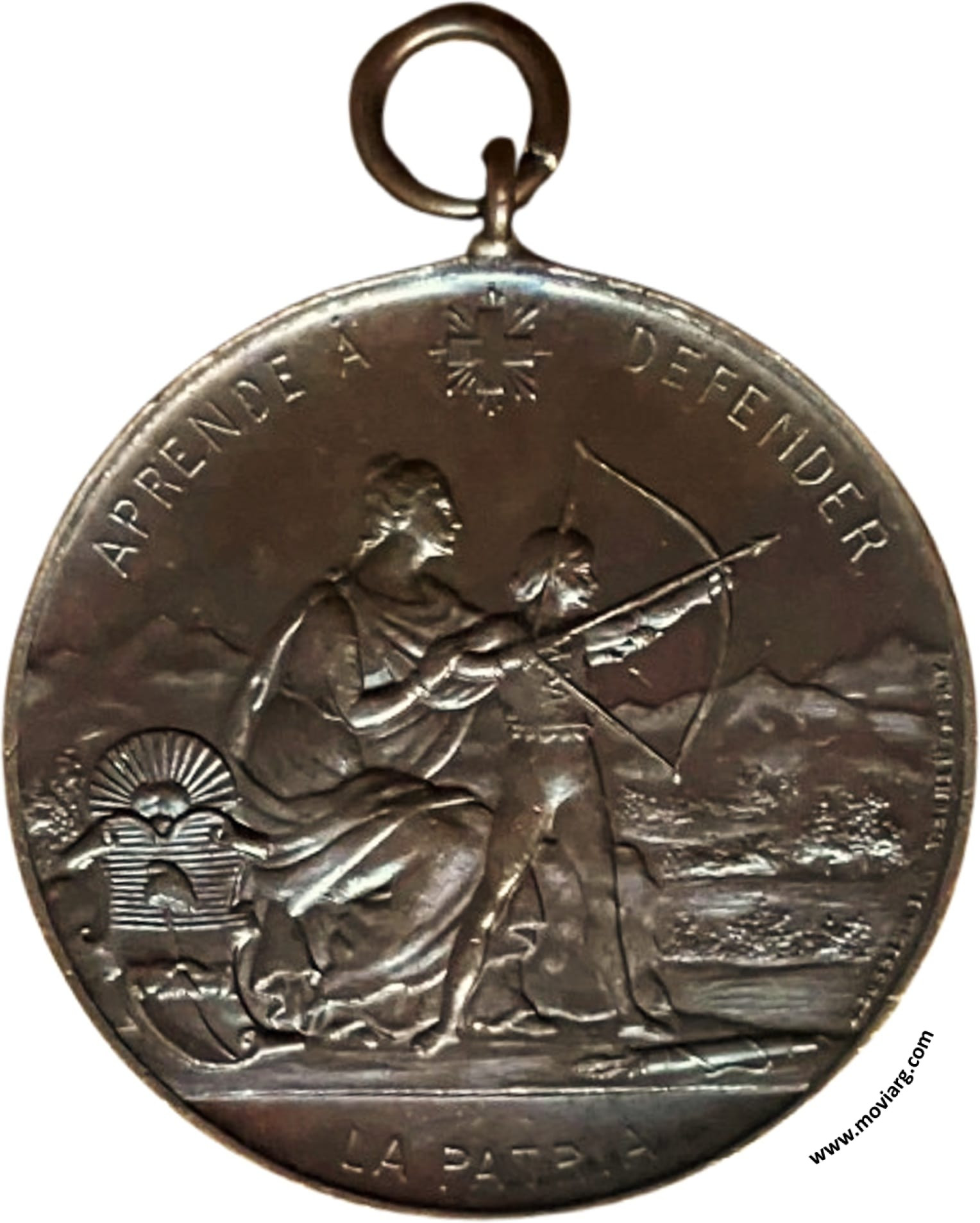 Anverso: APRENDE Á / DEFENDER / LA PATRIA. Firma: (???) E. LOSSIER & V. SCHLÜTTER (???) Reverso: SOCIEDAD TIRO SUIZO / ROSARIO DE SANTA FE Referencia: | |