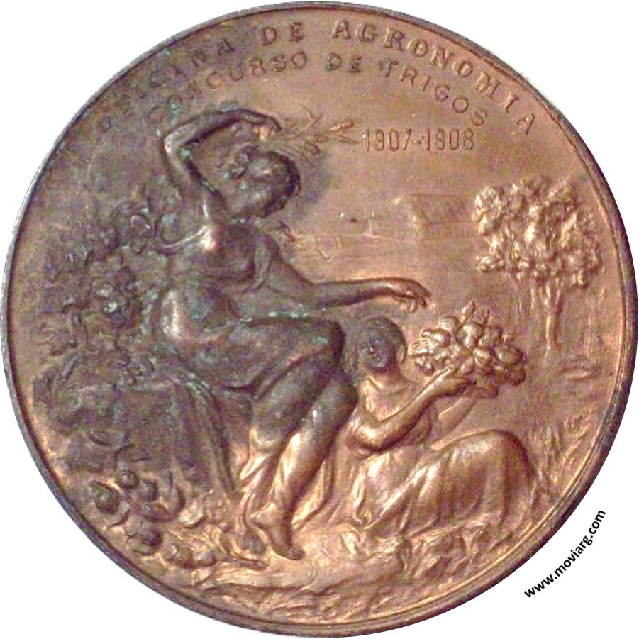 Anverso: OFICINA DE AGRONOMIA / CONCURSO DE TRIGOS / 1907 - 1908 Reverso: REPÚBLICA / ARGENTINA / MINISTERIO DE AGRICULTURA / PRESIDENTE / DR. JOSÉ FIGUEROA ALCORTA / MINISTRO / ING. PEDRO EZCURRA. Firma: GOTTUZZO Y CA. Referencia: | |