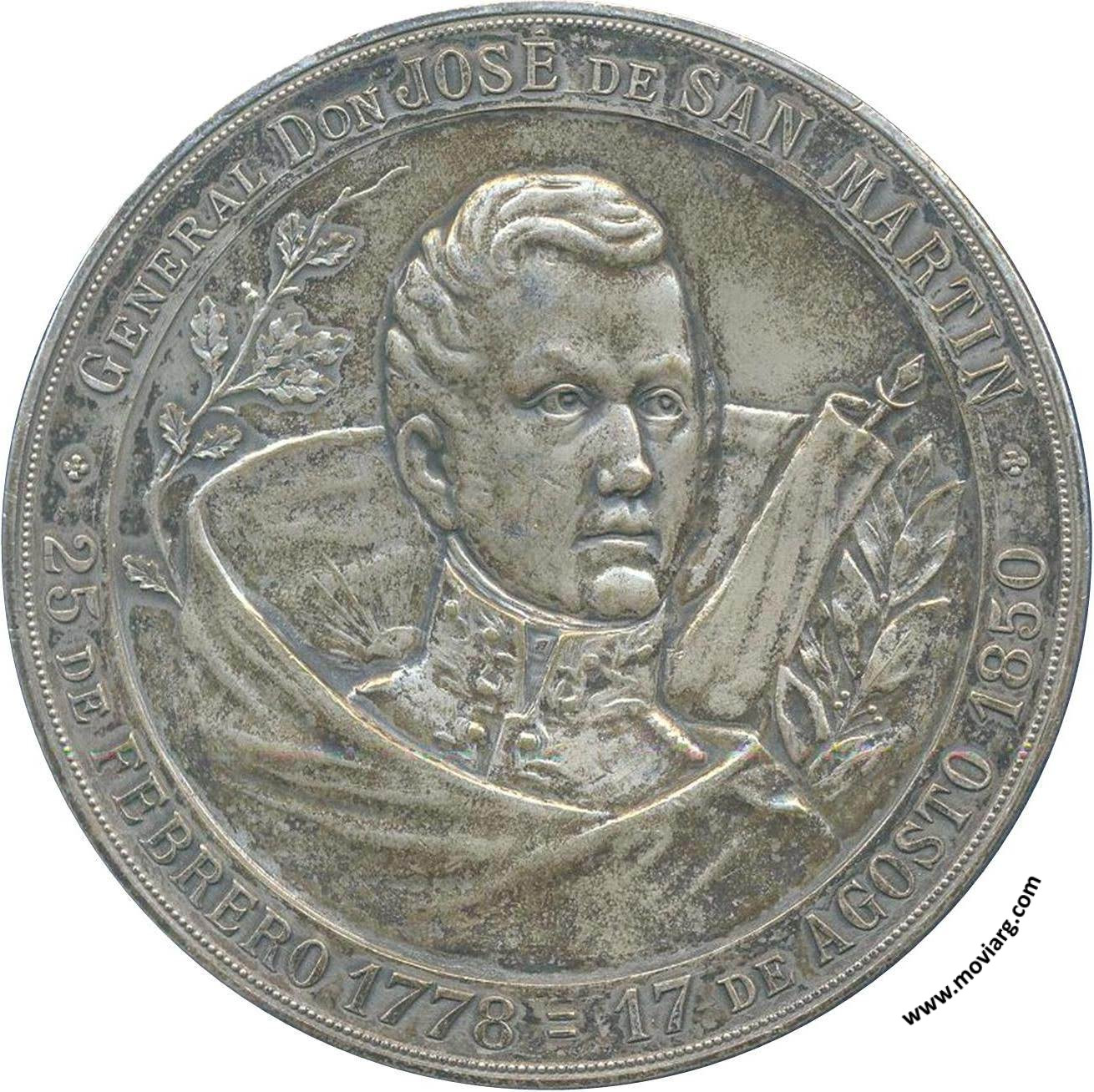 Anverso: GENERAL DON JOSÉ DE SAN MARTIN / 25 DE FEBRERO 1778 = 17 DE AGOSTO 1850 Reverso: AL LIBERTADOR SUD AMERICANO / EL PUEBLO ARGENTINO / YAPEYU - 12 OCTUBRE 1899. Firma: J. GOTTUZZO / B. AIRES Referencia: | |