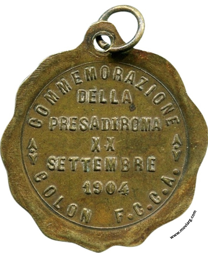 Anverso: ROMA INTANGIBLE. Campo: SPQR. Firma: CASANOVAS Y HORTA Reverso: COMMEMORAZIONE / DELLA / PRESA DI ROMA / XX / SETTEMBRE / 1904 / COLON F.C.C.A. (Ferrocarril Central Argentino) Referencia: | |